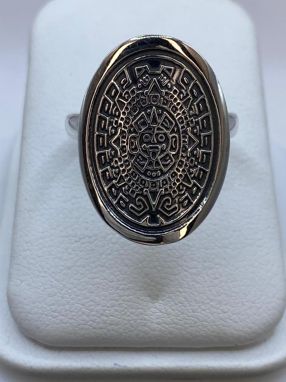 🌞 Anillo Ovalado Calendario Azteca en Plata .925